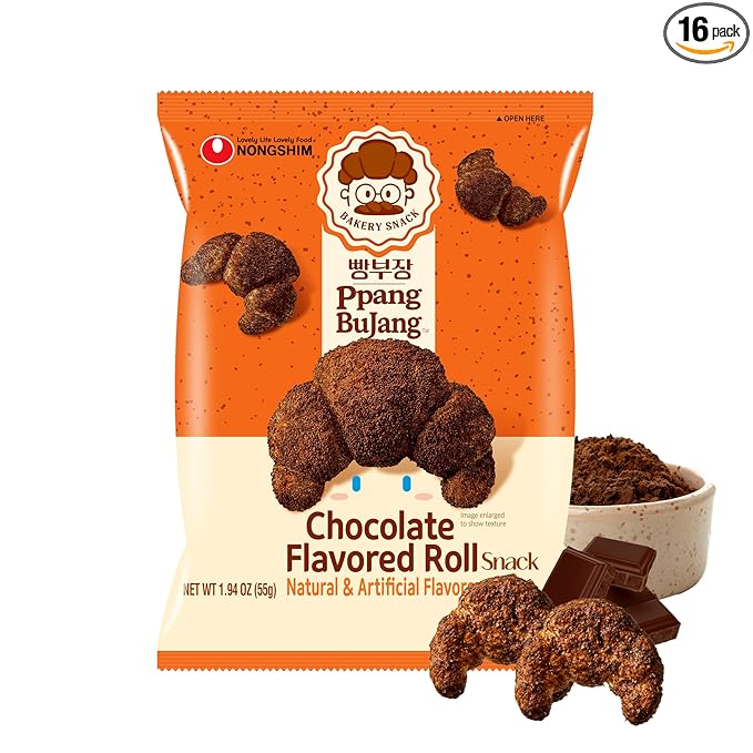 Direto da Coreia do Sul, o Nongshim Ppang Bujang é um snack que combina o charme do pão doce com a indulgência do chocolate. Cada rolinho tem uma casquinha levemente crocante por fora e um centro macio com sabor de cacau, criando uma experiência única a cada mordida.