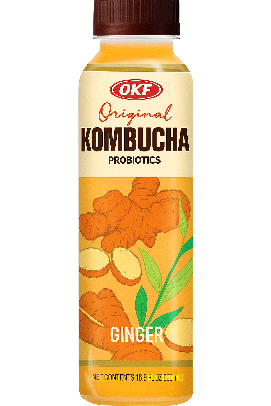 O Kombucha OKF Ginger combina o sabor marcante do gengibre e Limão com a leveza da fermentação natural do chá, trazendo um equilíbrio perfeito entre frescor e bem-estar. Rico em probióticos e pós-bióticos, auxilia na digestão e contribui para a saúde intestinal.