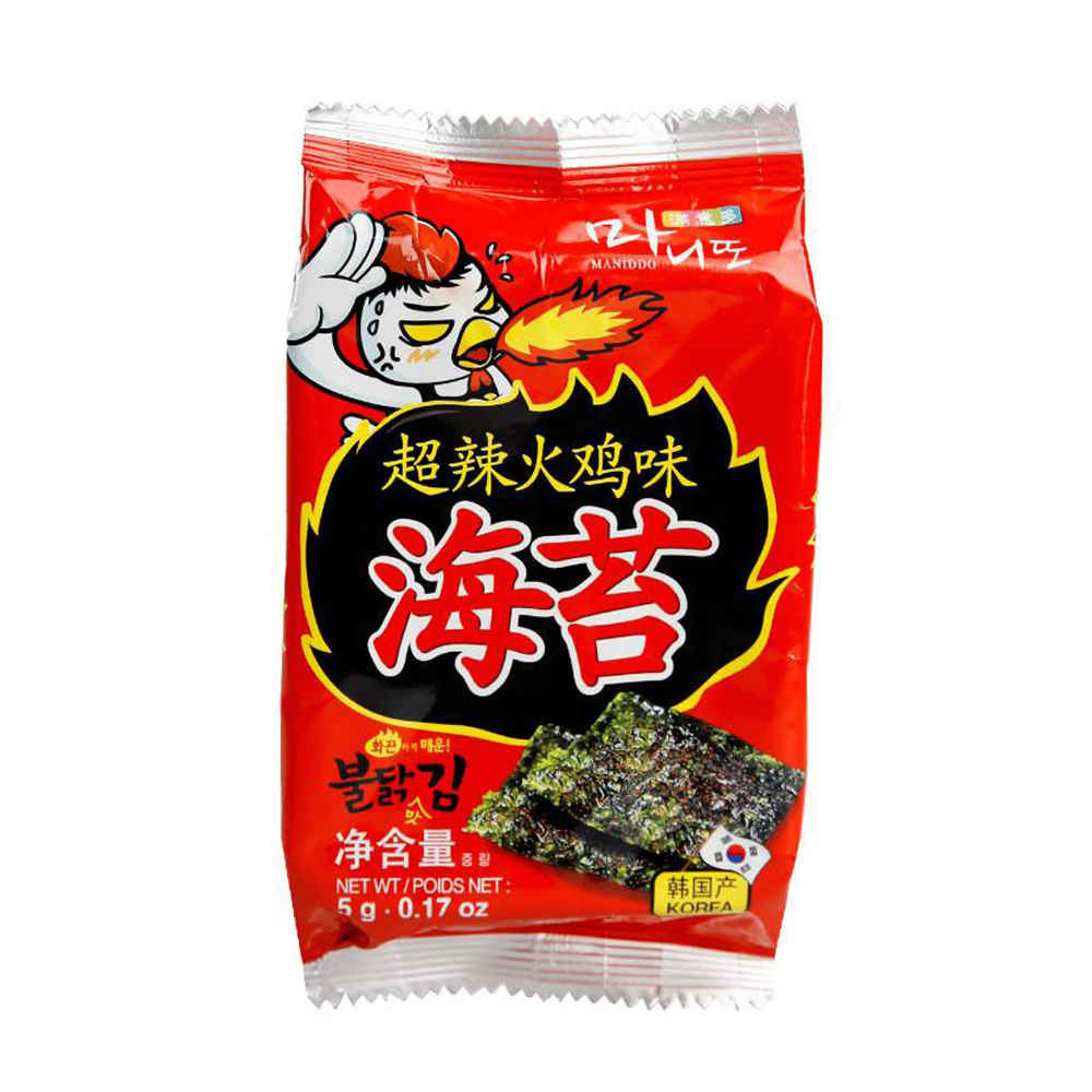 Ingredientes: alga marinha, óleo de canola, tempero (açúcar, extrato de chili, maltodextrina, frutose), óleo vegetal, óleo de gergelim, dióxido de silício (INS551), ácido cítrico (INS330), emulsificante (INS471), páprica (INS160c) Contém glúten Alérgicos: contém derivado de soja. Pode conter leite e trigo Manter em local seco e fresco